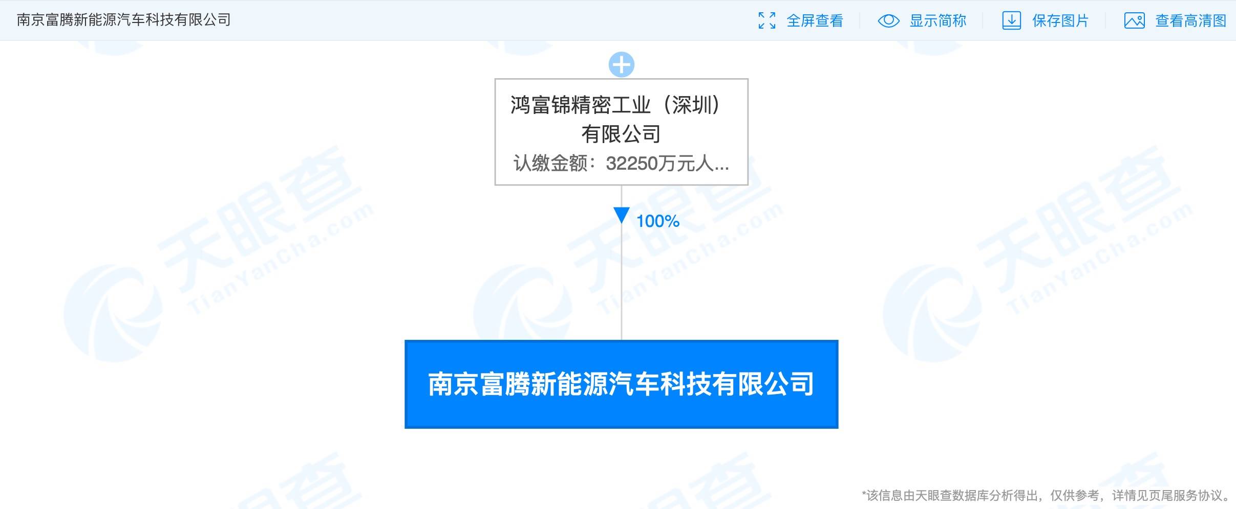 南京富腾新能源汽车科技有限公司成立,由富士康关联公司全资控股