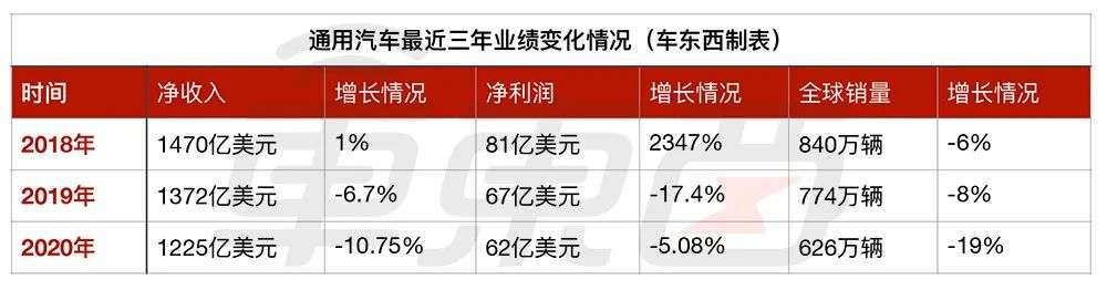 2019年通用汽车的全球销量为774.47万辆,与2018年相比下滑8%。而2020年共计售出了626万辆车,与2019年的774.47万辆相比,下滑幅度达到了19%。