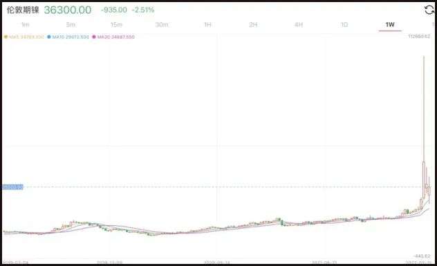 镍价的经历就更加浮夸,3月7日-8日两个交易日内,伦敦期镍价格从约3万美元/吨一度上涨至10万美元/吨。即今天众所周知的“妖镍”,青山集团遭多头逼空事件。