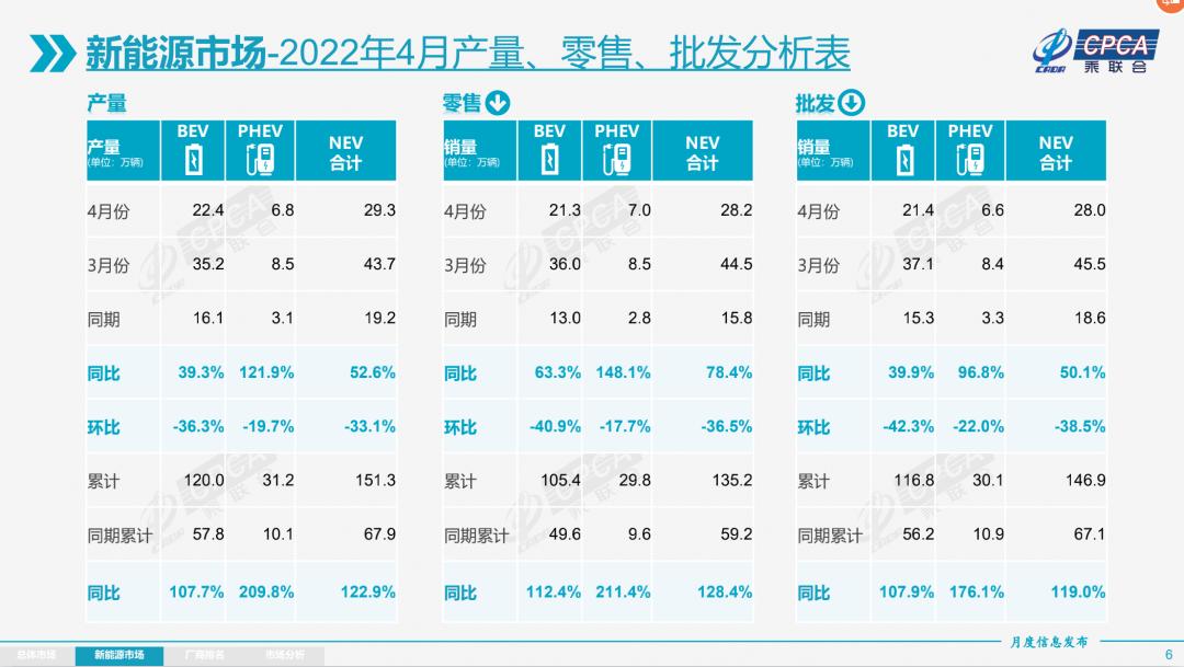 尽管4月新能源车零售较3月环比下降了36.5%。