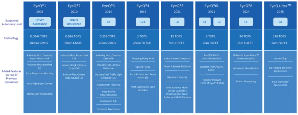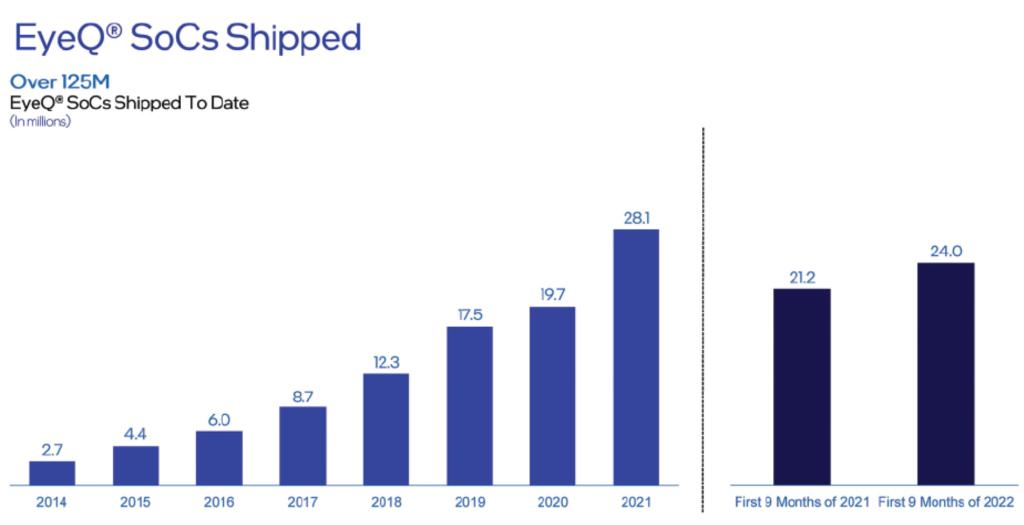 ▲Mobileye的EyeQ系列芯片出货量一路上扬