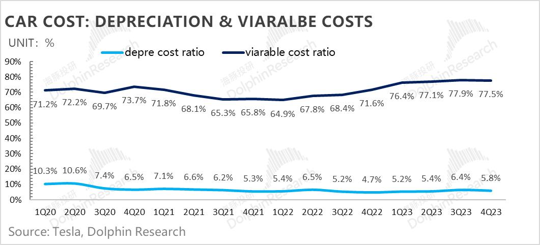 2) 单车可变成本下行不足:这次单车毛利率不及预期,主要是单车可变成本的下行幅度没有覆盖住单价的下行,单车可变成本下行不足900元,没有覆盖住单车下行的一千元单价,导致销量规模效应释放的利润无法充分发挥。
