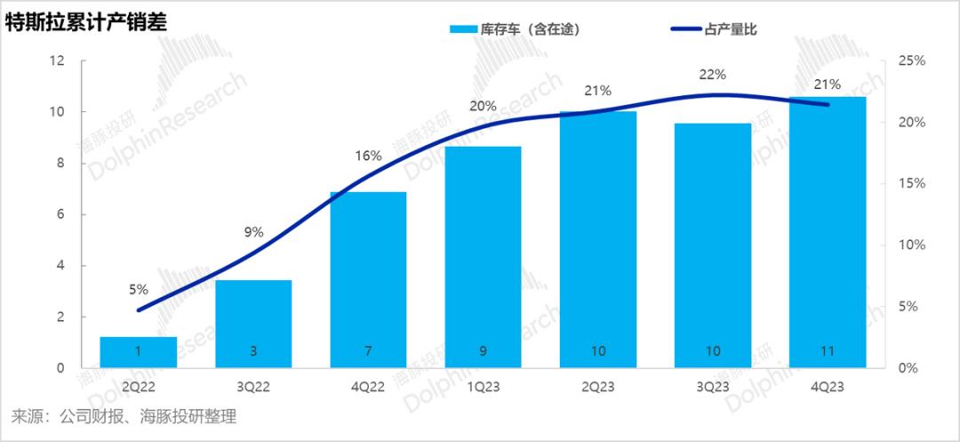 那这样整个2024年汽车销量大概也就是多增30万辆上下,对应同比15%多一些。海豚君注意到目前市场上的很多预期是30万基本是底线,40万是均值,对应2024年销量是210-220万辆之间。但即使这样,2024年明显不是特斯拉年复合增长50%的兑现年。