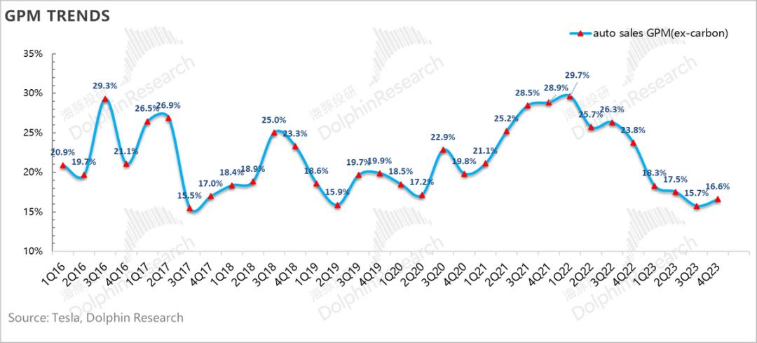从目前公司披露的信息来看,2024年特斯拉会从产量第一、价格第二(产多少卖多少)走向价格和产量之间的平衡,会开始逐步管控毛利率目标。