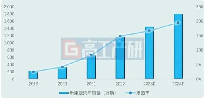 据高工产业研究院(GGII)预测,2024年我国新能源汽车销量将达1150万辆(含出口),电动化渗透率有望超过37%。其中,新能源乘用车销量为1100万辆,电动化渗透率有望突破40%。2024年新能源汽车旺盛需求推动下,新能源行业势必会迎来再一次的繁荣。