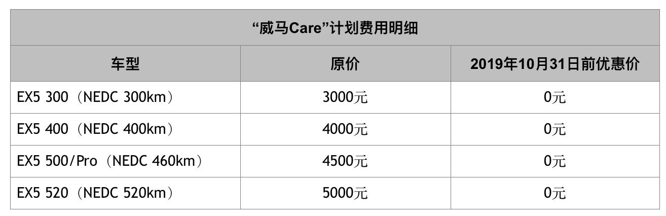 针对用户关心的电池安全和衰减情况,威马汽车透露,目前威马EX5单车平均进行16万公里真实路况测试,电池衰减率小于5%。威马此次推出了“威马Care”的质保服务,用户在购车后100天内花3000至5000元购买该保障,即可享受车辆全生命周期内的动力电池无忧保障。目前,消费者只要在今年10月31日前购买威马汽车,即可免费享受这项服务。