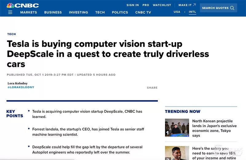 特斯拉在今年5月份以来,已经有11名自动驾驶工程师离开了团队。此次收购DeepScale,将会填补特斯拉自动驾驶团队人才流失的困境。
