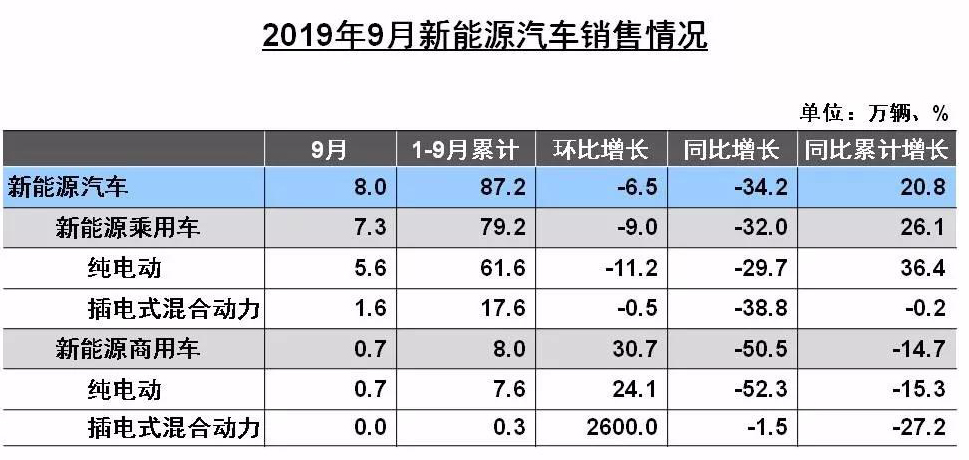 从今年7月开始,新能源汽车销量连续3个月出现同比下滑,5年以来首次出现“三连降”。中国汽车工业协会(以下简称“中汽协”)发布的数据显示,9月新能源汽车产销量分别为8.9万辆和8万辆,同比下滑29.9%和34.2%,这一数字甚至贴近两年前的水平,无论是同比还是环比,均呈现罕见下滑。