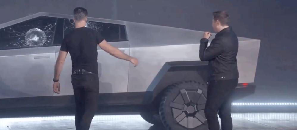 有评论调侃称“Cybertruck可以承受大锤和子弹,但是不能承受近距离投掷的铁球”。