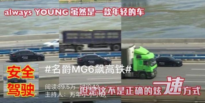 5月26日,一名网友在高铁上拍摄的视频火遍全网,视频中一辆黑色名爵6在高速公路上与并行的高铁展开追逐,整个过程持续一分多钟。目前我国高铁的最低时速皆达到250公里/小时,这台名爵6的超速程度可想而知。