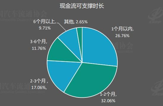 在现金流方面,经销商的压力持续增大。认为现金流只能支撑1个月的占26.76%,只能支撑3个月以内的占比超过75%。