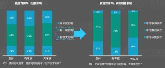 值得注意的是,尽管很多车企已经复工复产,但消费者压抑的购车需求仍会阻碍销量。69%的购车者认为疫情影响了自己的购车计划,其中考虑取消买车、推迟买车的占68%。“经济不稳定,不希望大额消费”是消费者考虑取消购车计划的最主要原因。
