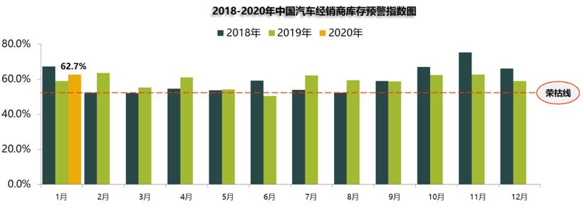 与此同时,我们看到车企布置的销售任务仍在持续攀升,经销商库存压力不断加大。从以下2018~2020经销商库存预警指数图我们可以看到,除了去年六月国五转国六期间库存得以大量释放外,其他月份库存系数多处于警戒线之上。