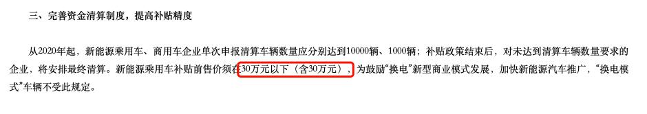 4月23日,四部委联合印发《关于完善新能源汽车推广应用财政补贴政策的通知》,宣布将新能源汽车推广应用财政补贴政策实施期限延长至2022年底,并规定新能源乘用车补贴前售价须在30万元以下(含30万元),“换电模式”车辆不受此规定。