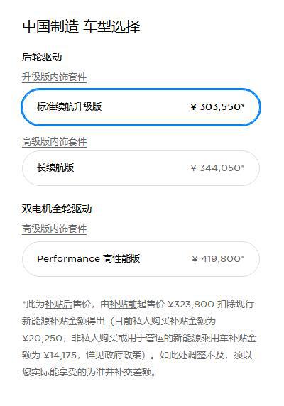 政策一出,舆论纷纷直指这一细化到价格的补贴政策就是为特斯拉“量身制定”的,然而政策出台24小时后,刚刚降价没几天的特斯拉“强势”宣布上调价格,中国制造Model 3标准续航升级版和长续航版售价分别上涨4500元和5000元,目前Model 3标准续航升级版补贴后售价为30.355万元,长续航版为34.405万元,而明年一月才开始交付的高性能版售价不变,仍为41.98万元。